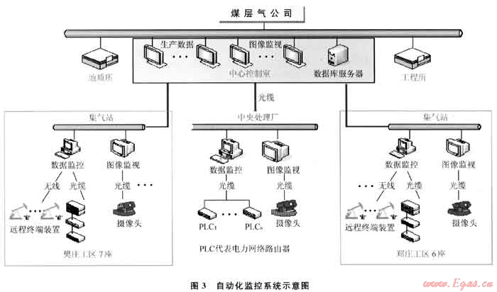 采用SCADA系統(tǒng)對全區(qū)生產(chǎn)運行分單井-集氣站-處理中心3級監(jiān)控和運營管理(圖3),集氣站采用以計算機控制技術(shù)為核心的站控系統(tǒng)(SCS),完成站場內(nèi)工藝過程的數(shù)據(jù)采集和監(jiān)控任務(wù),采氣井場設(shè)置SCADA系統(tǒng)遠(yuǎn)程終端裝置(RTU),將井口數(shù)據(jù)通過無線寬帶+光纜傳輸?shù)姆绞絺髦翑?shù)據(jù)中心。實現(xiàn)了生產(chǎn)管理的智能化,減少了30%的用工總量,保障了系統(tǒng)平穩(wěn)運行,提高了管理水平和工作效率。