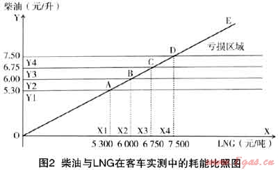 到目前為止,全國已經(jīng)投產(chǎn)的LNGX:廠超過40家,在建和準(zhǔn)備前期手續(xù)的超過30家,預(yù)計(jì)到“十二五”末期,LNG工廠總產(chǎn)能將超過1000萬t。全國已經(jīng)投產(chǎn)的接收站共有5個(gè),在建的接收站有2個(gè)。十二五”期間,我國將建設(shè)LNG接收站17座,年接收能力超過5000萬t。LNG槽車運(yùn)輸能力隨著LNG市場(chǎng)覆蓋率的增加而大幅提高,擁有超過100輛槽車運(yùn)載能力的企業(yè)不少于3家,小型LNG槽船也將在近期內(nèi)投入市場(chǎng)。國內(nèi)LNG利用初期主要是通過衛(wèi)星站形式供應(yīng)小區(qū)、大型工業(yè)及小規(guī)模城市,進(jìn)口LNG因?yàn)椴少徚看笾饕?yīng)電廠及大中城市。根據(jù)跟車實(shí)測(cè),客車百公里消耗燃料量以公斤為計(jì)量單位的LNG數(shù)值和以升為計(jì)量單位的柴油數(shù)值是近似的。圖2可以反映兩種燃料實(shí)際使用的成本差距。過去18個(gè)月,華東地區(qū)LNG衛(wèi)星站到岸均價(jià)維持在5500元/t左右。至少25%的價(jià)格差距促使LNG將逐漸擠占汽柴油的市場(chǎng)份額,重型卡車、長途客車以及船舶LNG利用市場(chǎng)將會(huì)呈現(xiàn)爆炸式增長。單一的大型LNG倉儲(chǔ)業(yè)務(wù)國內(nèi)尚未有投資人涉及。LNG冷能利用是能源綜合利用的一個(gè)方向。