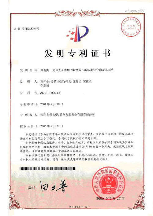 該產(chǎn)品正處于Ⅲ b臨床研究階段,已獲七項(xiàng)專利證書。 錦州九泰藥業(yè)與沈陽藥科大學(xué)合作開發(fā)的國家一類新藥鹽酸川丁...