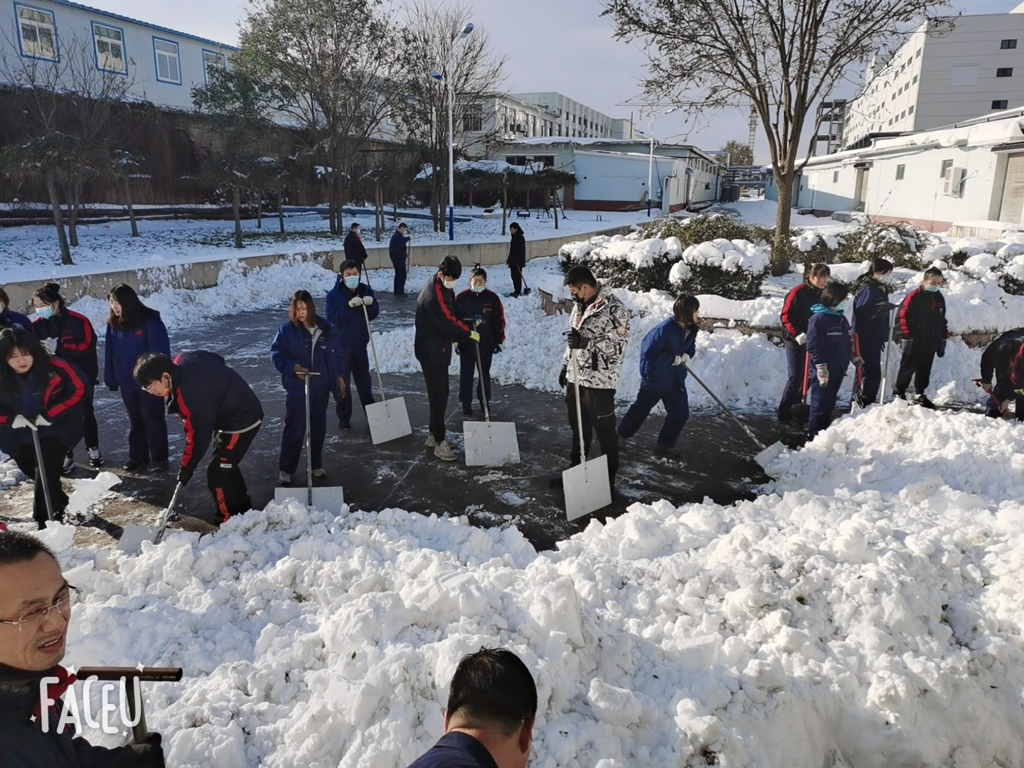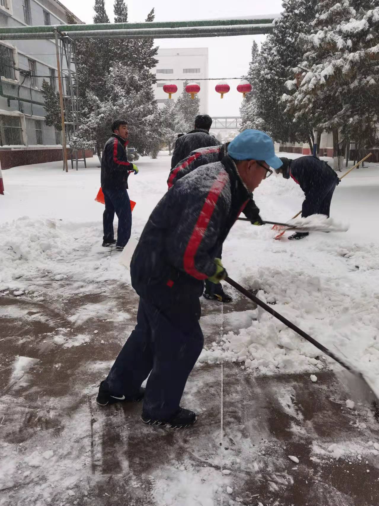 初雪是景,除雪是情。落雪無聲,洗盡鉛華。最美的不是下雪天,而是大家一起努力奮斗的身影。九泰人的辛勤汗水在寒冬揮灑,別樣的青春在雪中閃光。大家的歡聲笑語在白茫茫的雪地里漸漸消散,掃雪任務(wù)圓滿完成!