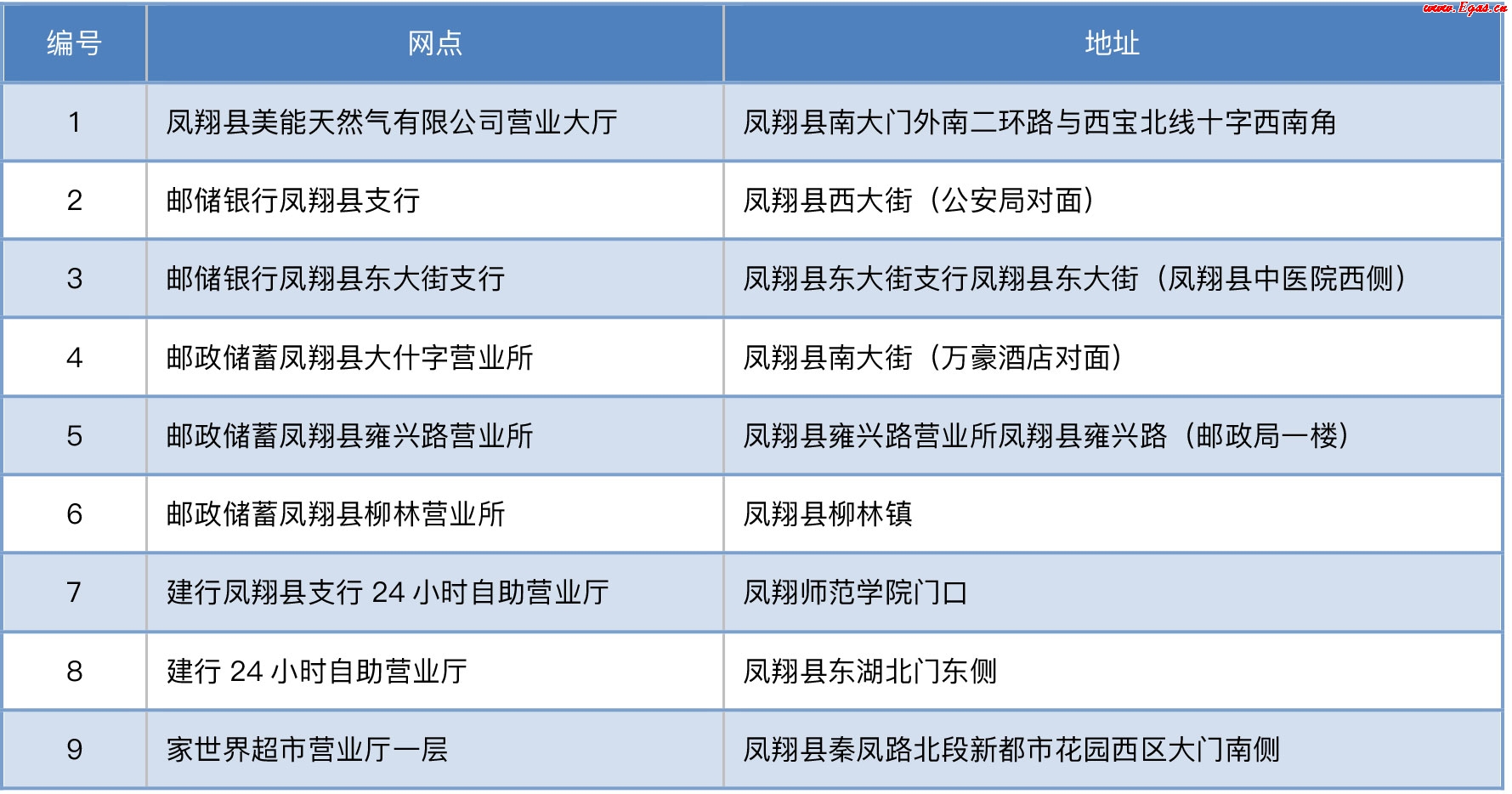 鳳翔縣美能天然氣公司售氣網(wǎng)點 0917-7230388