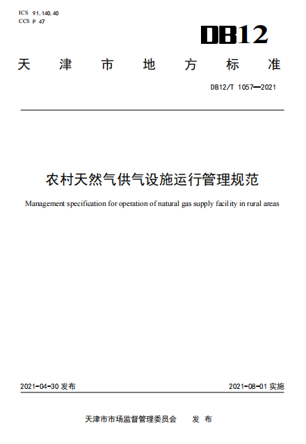 《農(nóng)村天然氣供氣設(shè)施運(yùn)行管理規(guī)范》 DB12∕T 1057-2021 發(fā)布