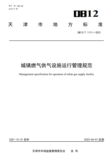 城鎮(zhèn)燃氣供氣設(shè)施運行管理規(guī)范DB12/T 1111—2021:本文件規(guī)定了城鎮(zhèn)燃氣管道與調(diào)壓設(shè)施,天然氣門站、儲配站、計量站設(shè)施,壓縮天然氣設(shè)施,液 化石油氣設(shè)施,液化天然氣設(shè)施,監(jiān)控與數(shù)據(jù)采集系統(tǒng)運行管理的基本要求。 本文件適用于天津市城鎮(zhèn)燃氣供氣設(shè)施從投產(chǎn)至報廢期間的運行管理和評價。 本文件不適用于上述供氣設(shè)施的維護、搶修和各類用戶燃具與用氣設(shè)備的管理,以及農(nóng)村天然氣供 氣設(shè)施的運行管理。
