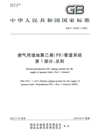 燃?xì)庥寐竦?a href=http://m.jalapenostogo.com/e/tags/?tagname=%E8%81%9A%E4%B9%99%E7%83%AF target=_blank class=infotextkey>聚乙烯(PE)管道系統(tǒng) 第1部分:總則GB/T 15558.1-2023